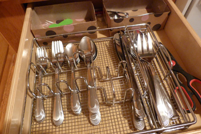 The silverware drawer had to be cleaned out. We had recently gotten a new set of silverware cuz the hubby was tired of mis-matched silverware. Yet, when putting the new silverware in the drawer, I left the old in there too. Why? Cuz, what if we needed it! Pfft. Simplify. Out it went today!