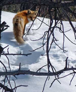 So, I was looking over towards the hill, and I see something orange. I squint. A fox!