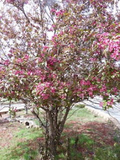 After the long winter, with the tree being dormant & just twigs, in early April it buds bright purple leaves.  The leaf buds grow into a deep plum color.